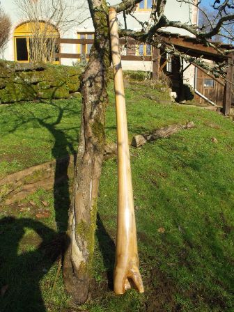 Et tant qu'on y est je poste mon premier didge de la cuvée 2011 : la "pata de vaca" (alias patte de vache) un mi - mi de 1m65 en érable sycomore.